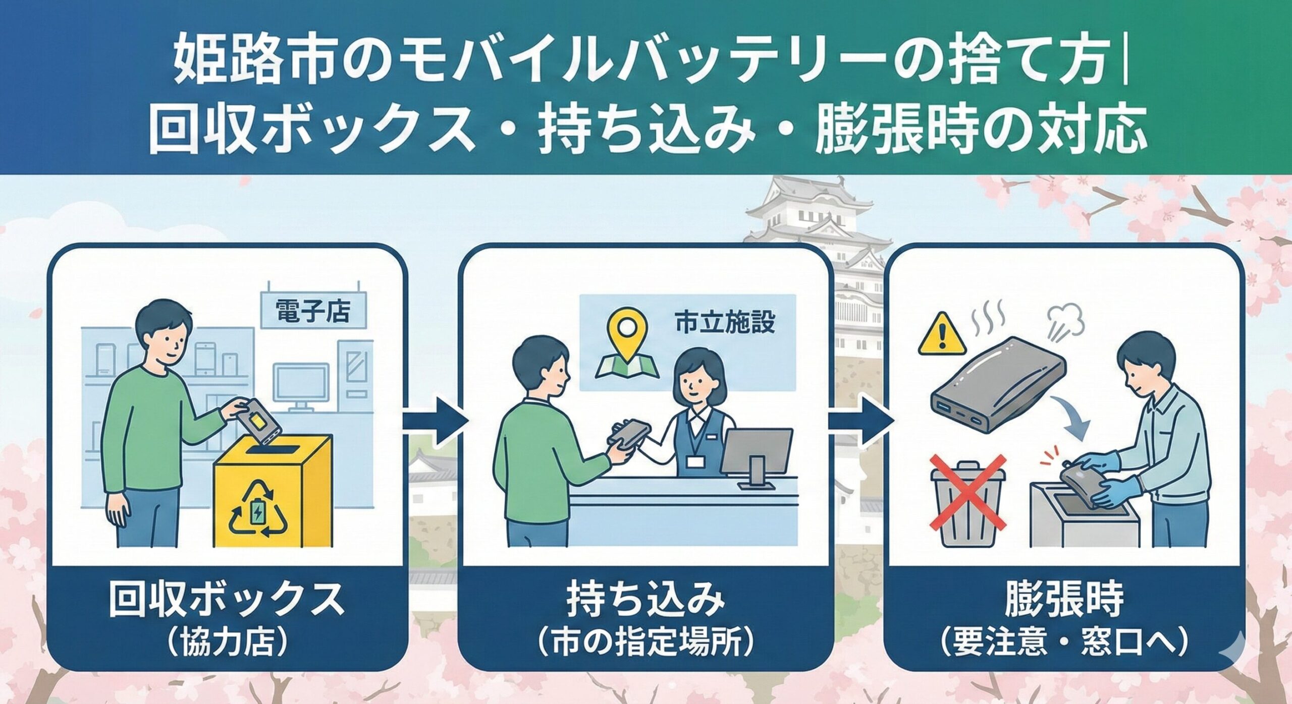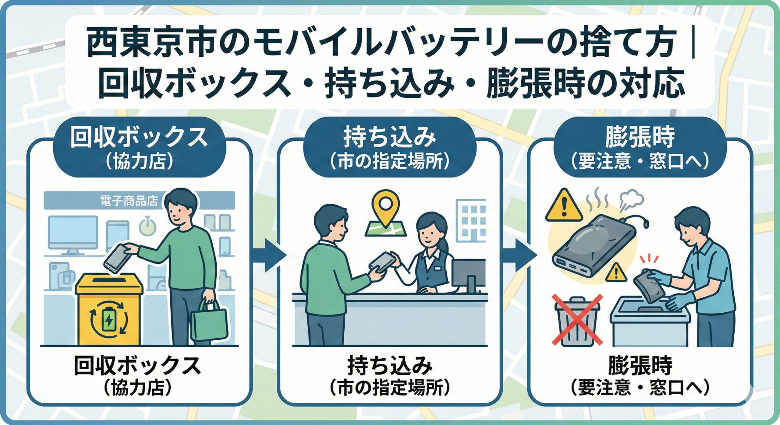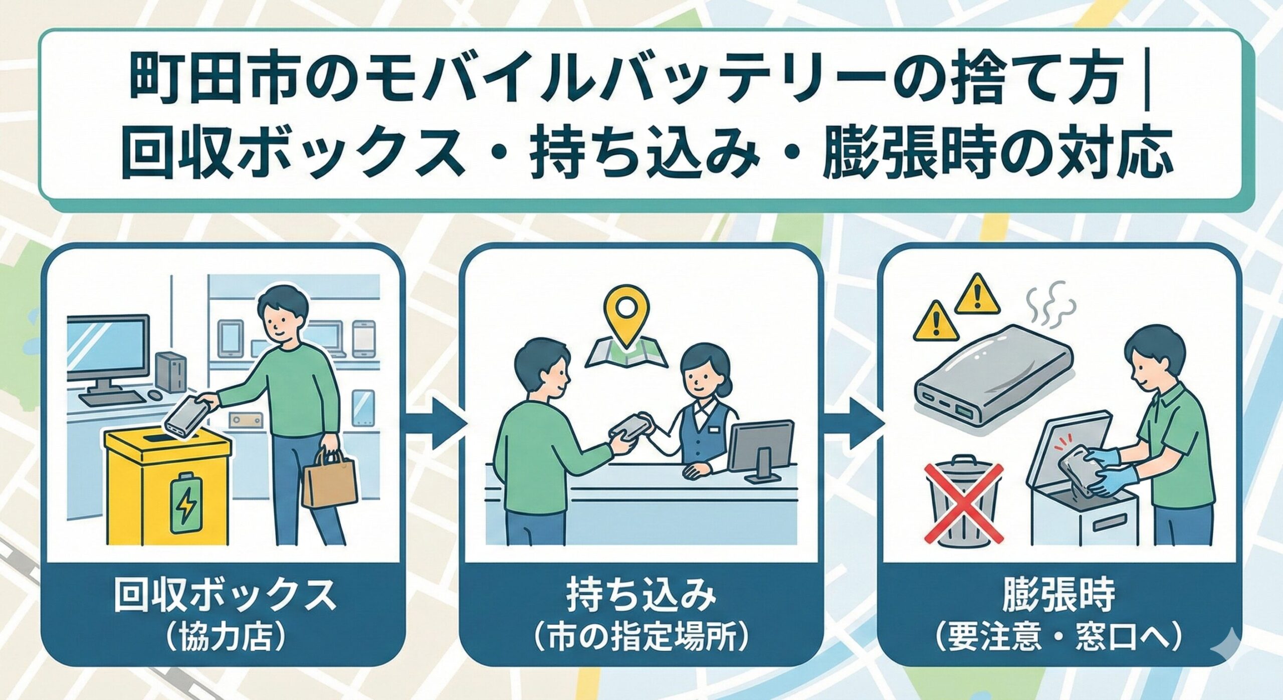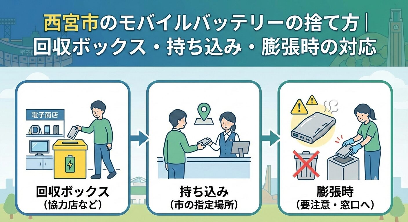 モバイルバッテリーを そのままゴミ袋へ は一番危険。端子の絶縁 → 一時保管 → 回収先 の順で進めてください。
