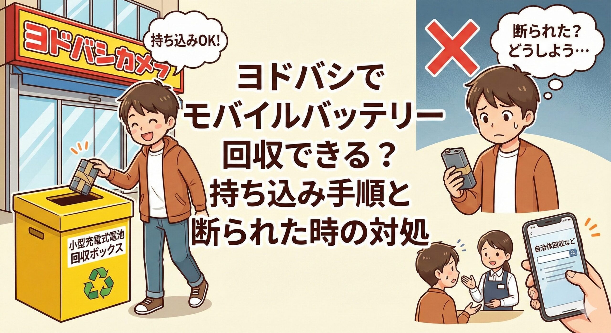 HOME > 回収場所 > 家電量販店(店舗別) > 家電量販店(店舗別) ケーズ、ビック、ヨドバシなど家電量販店ごとの回収ルール・持ち込み手順をまとめます。 店舗で断られやすいケースや、代替の回収方法もセットで紹介します。