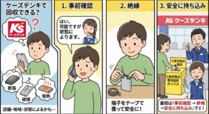 「ケーズデンキなら回収ボックスがある?」「壊れた/膨張したモバイルバッテリーも持ち込める?」と迷う方向けに、