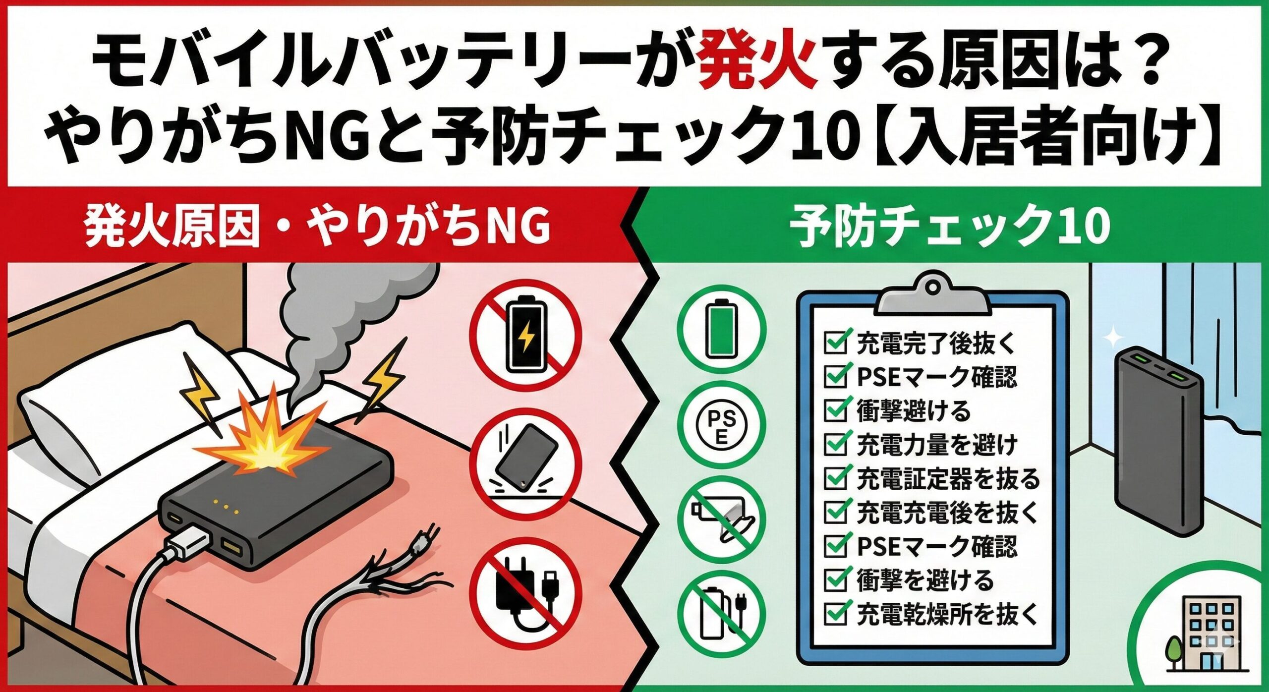 モバイルバッテリーが発火する原因は?やりがちNGと予防チェック10【入居者向け】