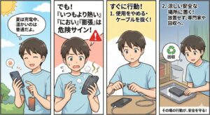 4. 異臭・膨張・煙があれば、無理に触らず安全確保(不安なら119)