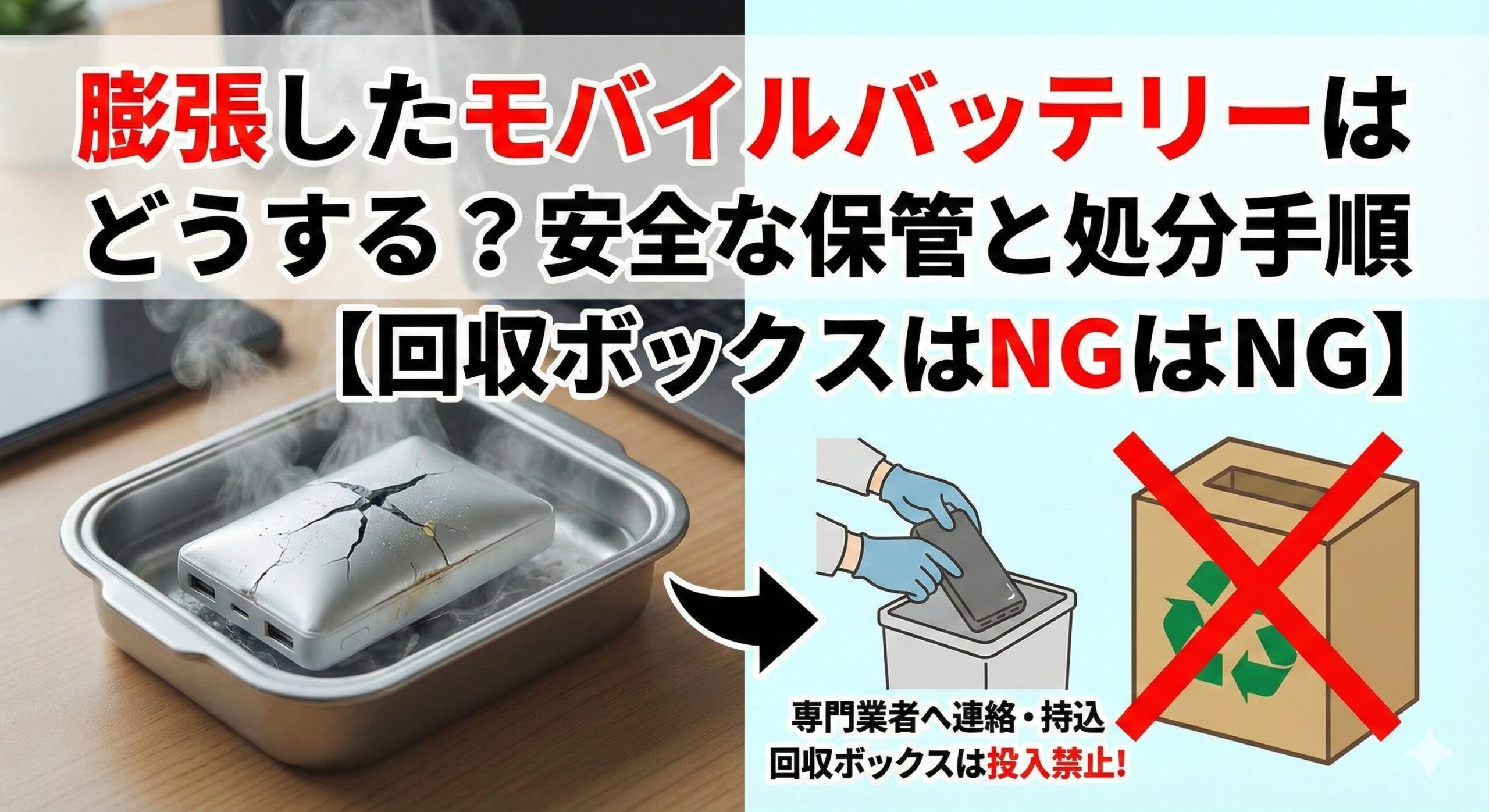 膨張したモバイルバッテリーはどうする?安全な保管と処分手順【回収ボックスはNG】